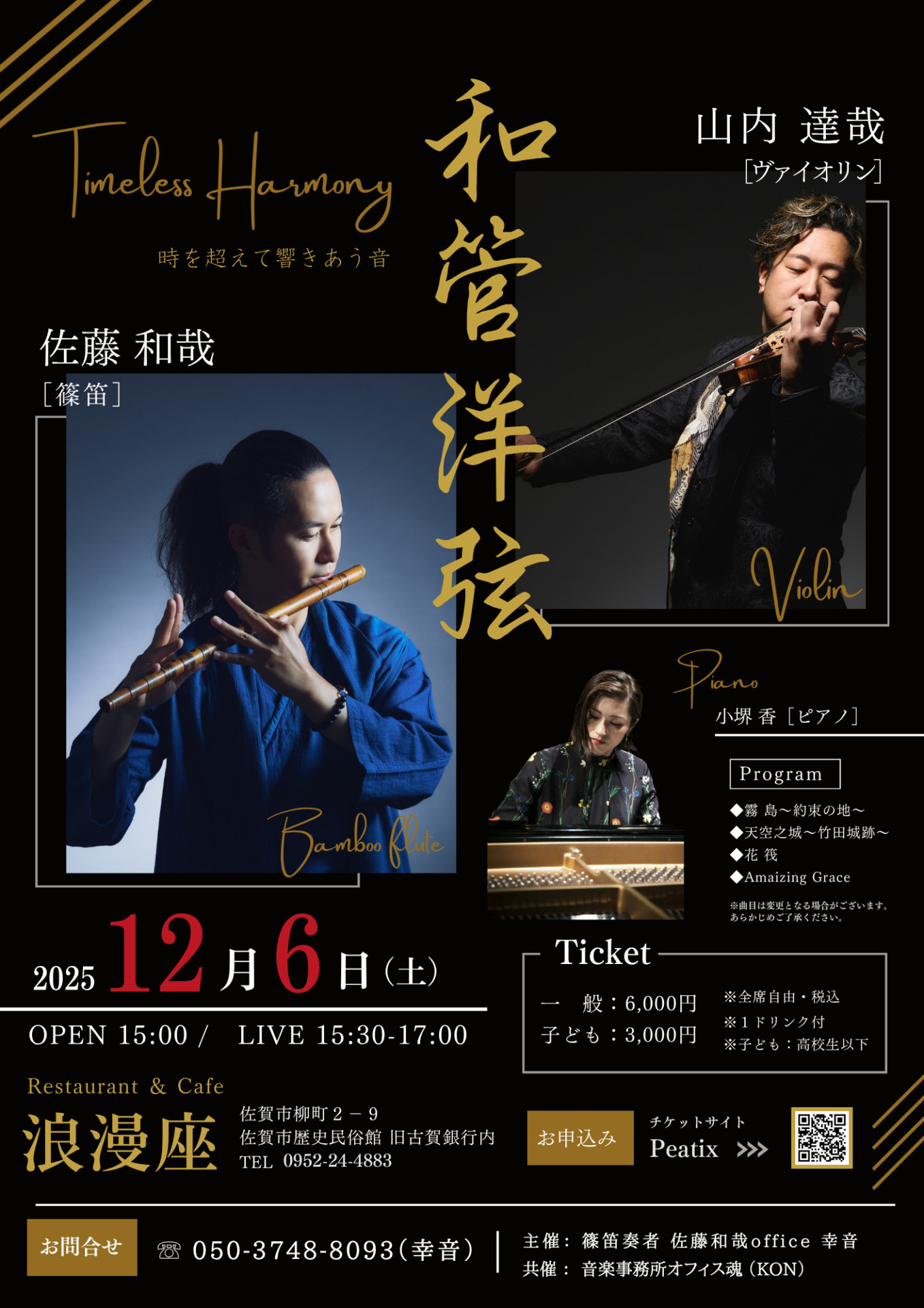 12月6日(土)佐賀 浪漫座 『 和管洋弦~Timeless Harmony~』佐藤和哉×山内達哉