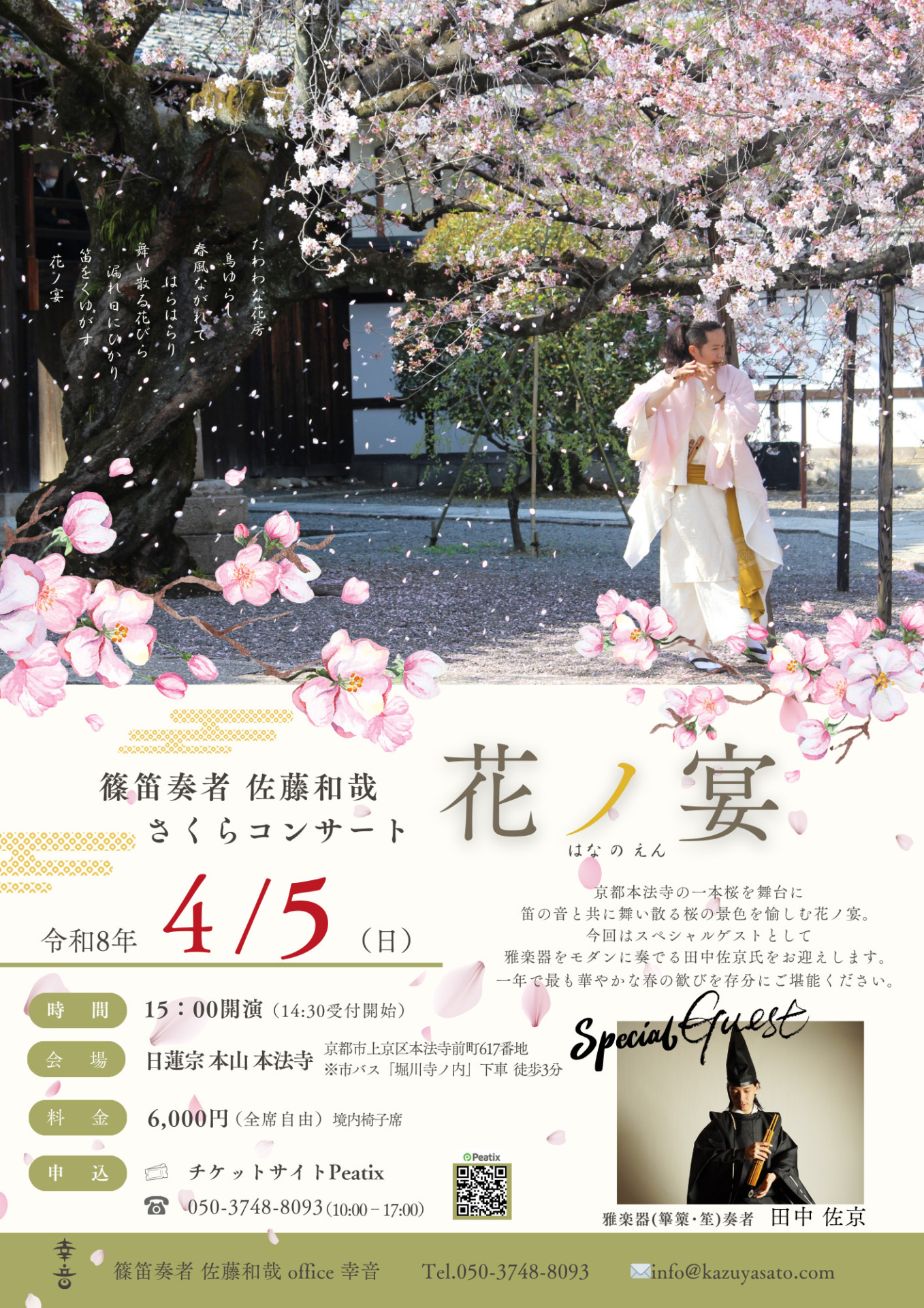 4月5日(日)京都 本法寺 さくらコンサート『花ノ宴』
