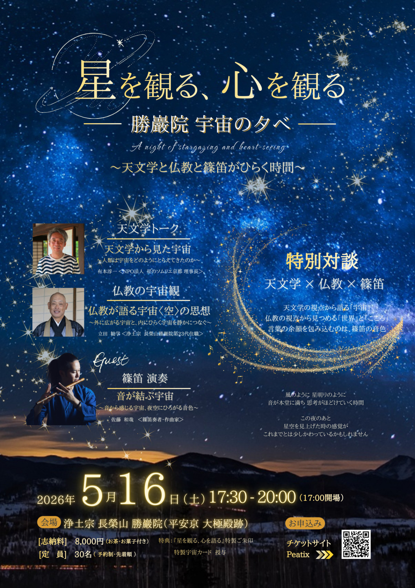 5月16日(土)『星を観る、心を観る -勝巌院 宇宙の夕べー』 Vol.1 ~天文学と仏教と篠笛がひらく時間~